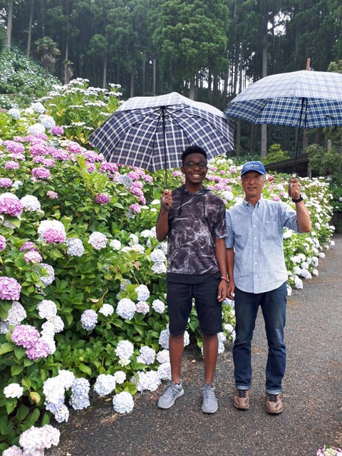 2日目は生憎の雨天。キャメロン君の希望で茂原のアジサイ園へ案内しました。沢山の写真や動画を撮ってお母さんに送るとの事。彼はジョージア州アトランタの大学に通っています。両親と12歳の弟が住んでいる所は遠いニュージャージー州。夏休みやクリスマス等長い休みがある時しか帰省できず、時々ホームシックになるとの事でした。
